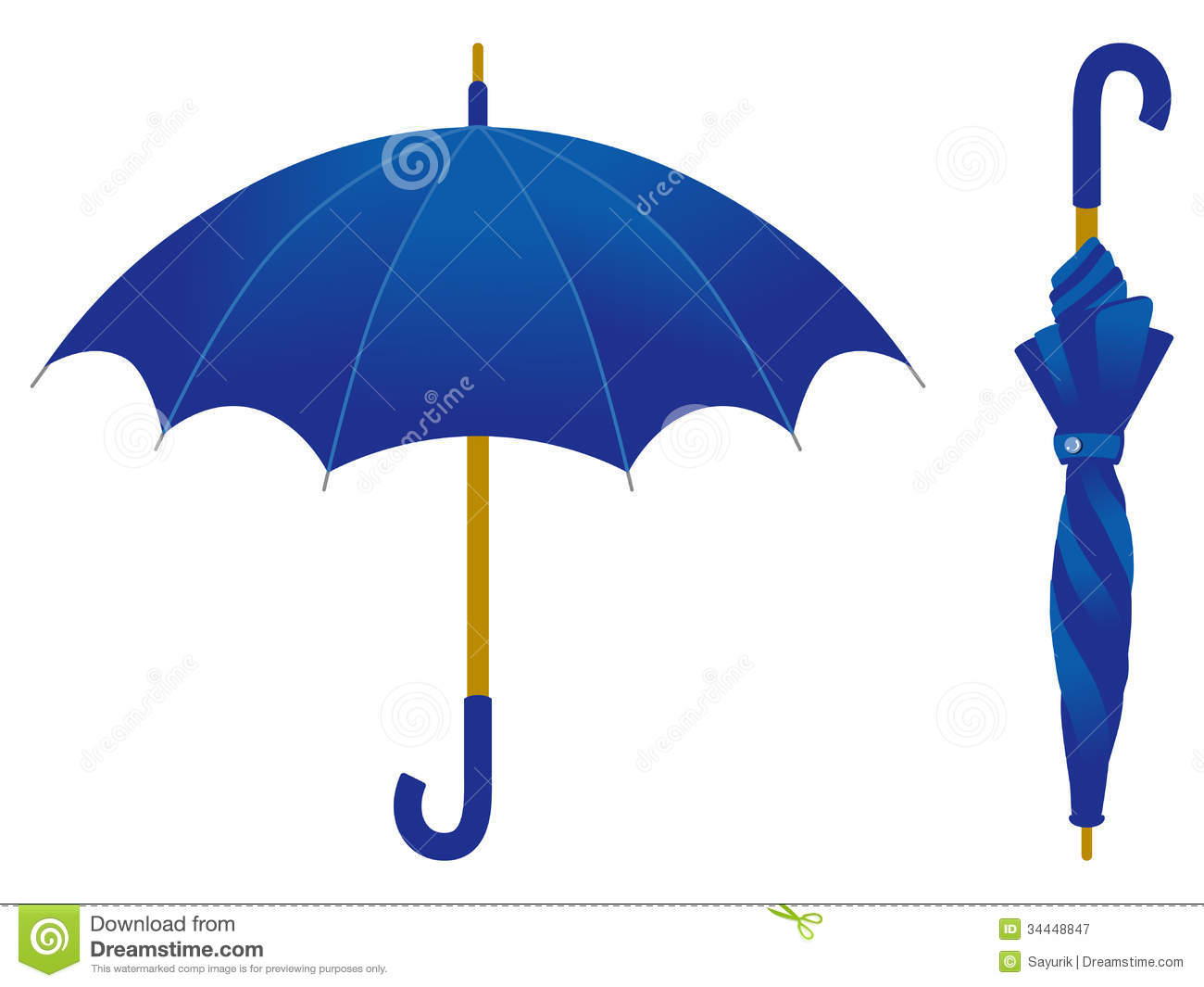 Blue umbrella clipart: Blue umbrella, open and closed