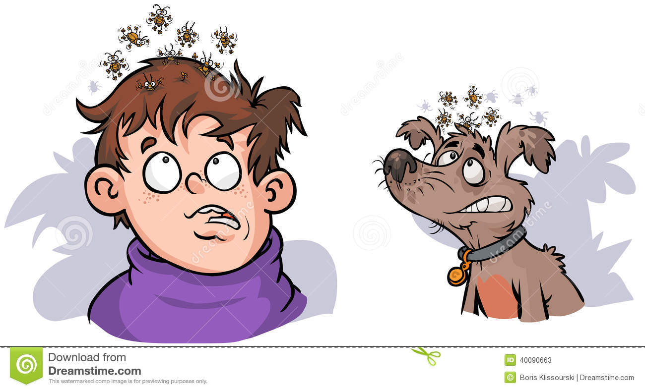 Louse clipart : Boy and Dog with lice.