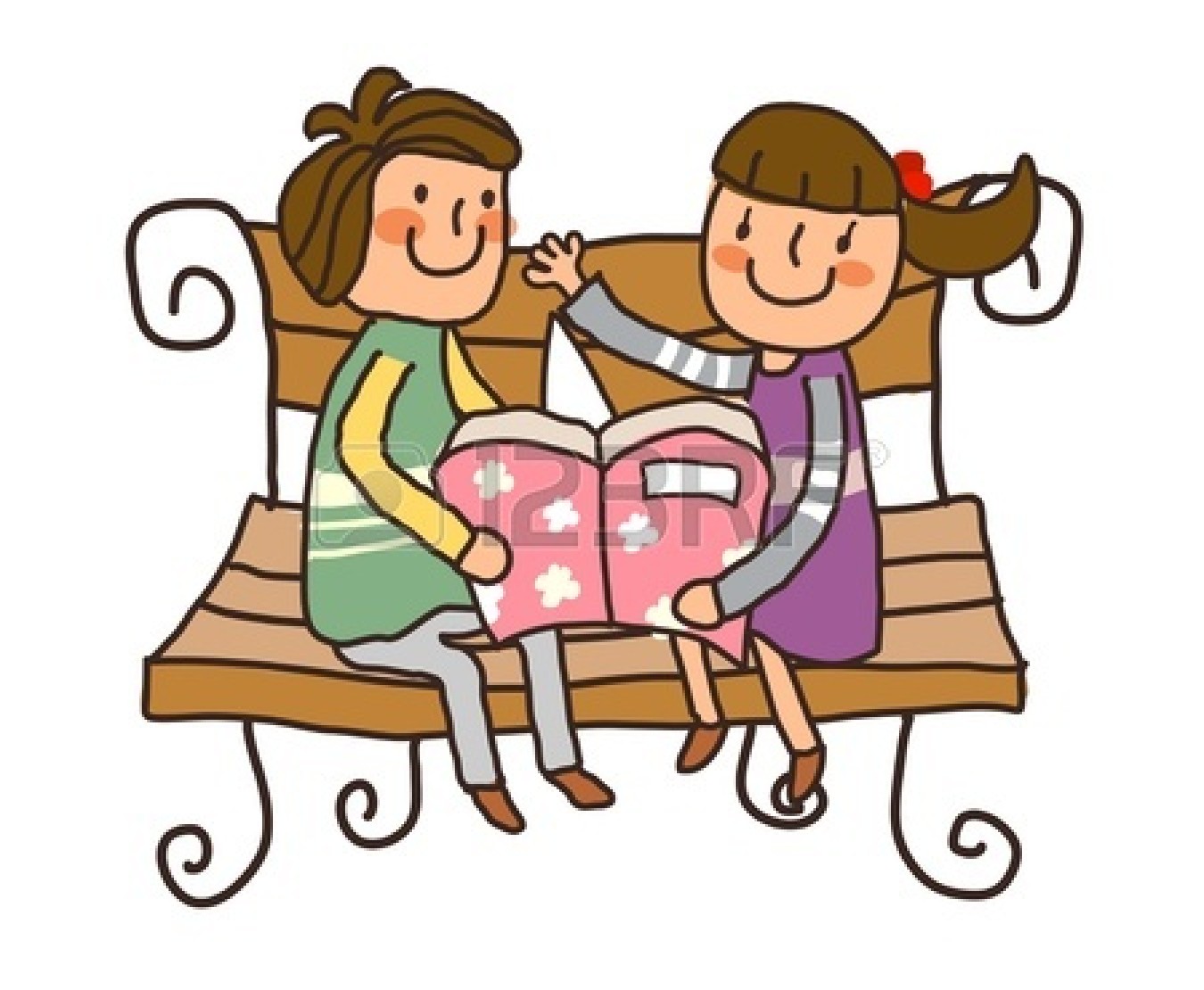 Boy and girl reading clipart: Boy And Girl reading book on