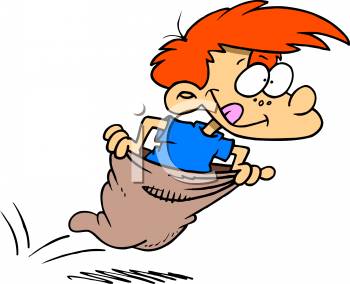 Winning a race clipart: Boy Competing in a Sack Race