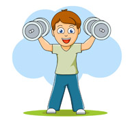 Exercise clipart: boy exercises with dumbell