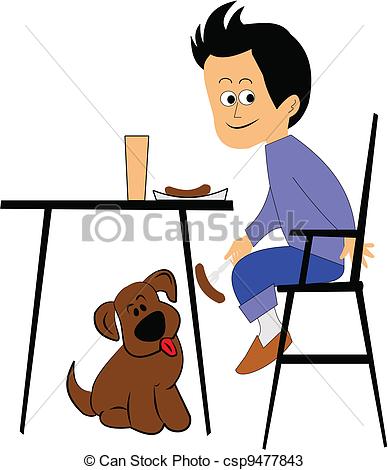 Feeding clipart: boy feeding his dog underneath
