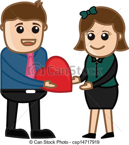 Giving gift clipart: Boy Giving a Heart to Girl