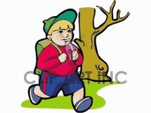 Kid with backpack clipart: boy hiking in the woods with