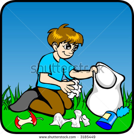 Garbage collector clipart: Boy picking garbage - stock