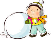 Snowball clipart: Boy Rolling a Big Snowball