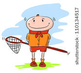 Butterfly net illustration: boy with a butterfly net.