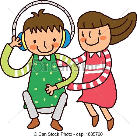 Togetherness clipart: Boy with headphone and girl -