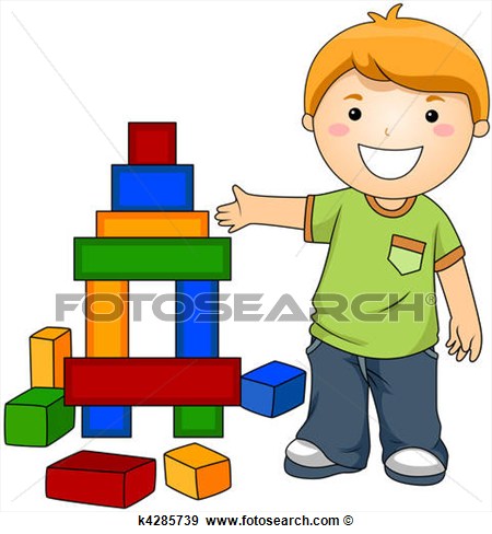 Block clipart: Boy with Toy Blocks