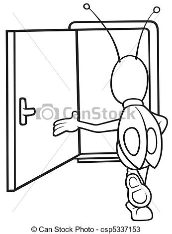 Open door clipart black and white: Bug and Open Door - Black and