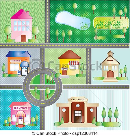 Place clipart: Buildings and city places,