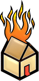 House fire clipart: burning man, house on fire