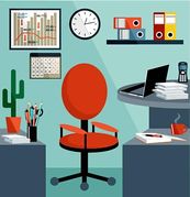 Workplace clipart: Business workplace with office