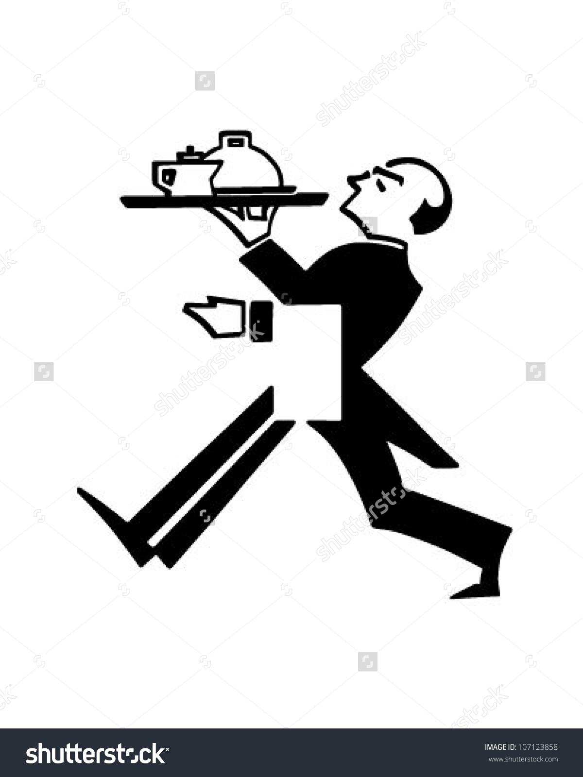 Butler clipart: Butler With Tray - Retro