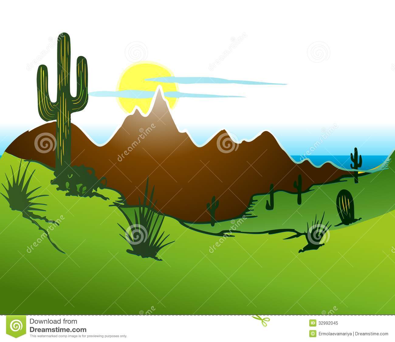 Southwest clipart: Cactus saguaro, Mountains and