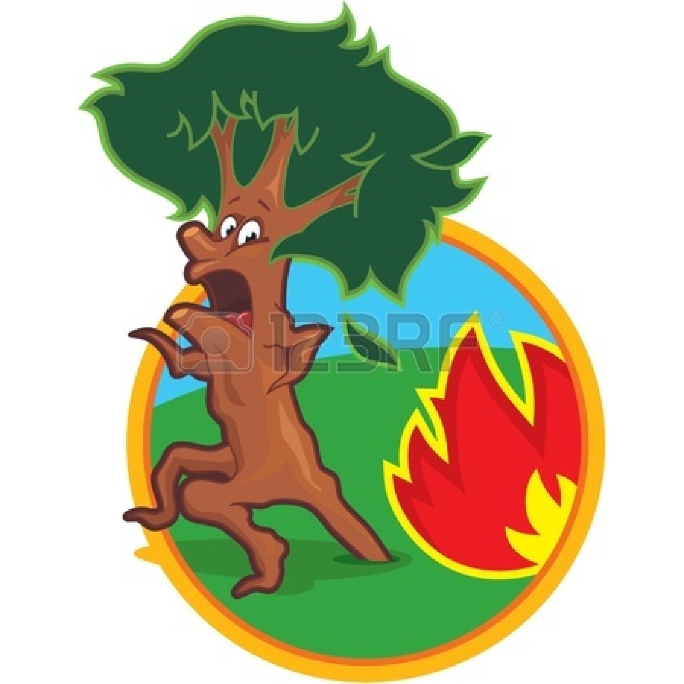 Cartoon fire with logs: camp fire : Scared Tree