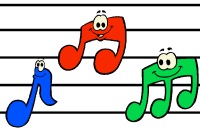 Music clip art for kids: car with three children is