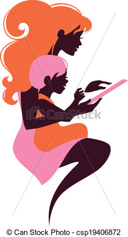 Mother and baby line drawing: Card of Happy Mother's Day
