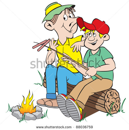 Campfire cartoon: cartoon art of a dad and his