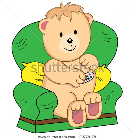 Tv remote cartoon: Cartoon bear sitting in