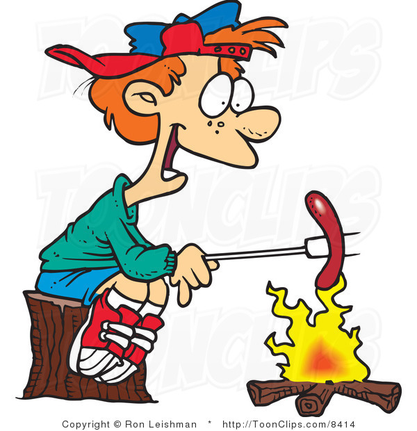 Cartoon campfire: Cartoon Boy Roasting a Weenie