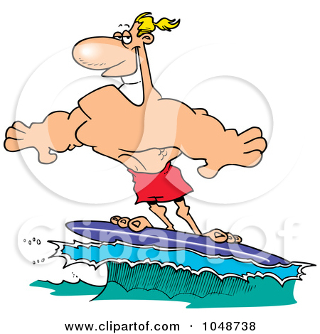 Buff clipart: Cartoon Buff Surfer Riding A