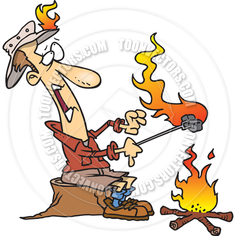 Cartoon roasting marshmallows: Cartoon Burning Marshmallows
