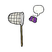 Butterfly net illustration: cartoon butterfly and net