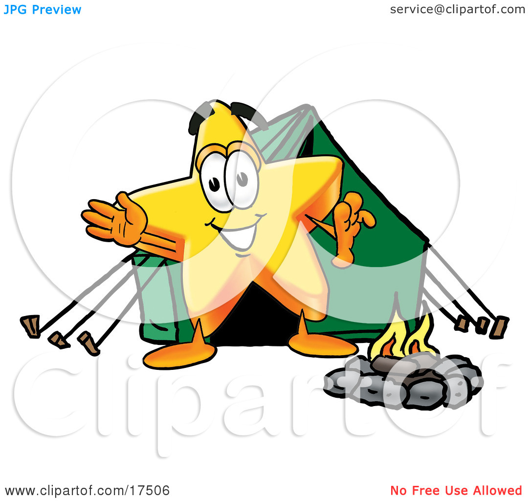 Cartoon campfire and tent: Cartoon Character Camping