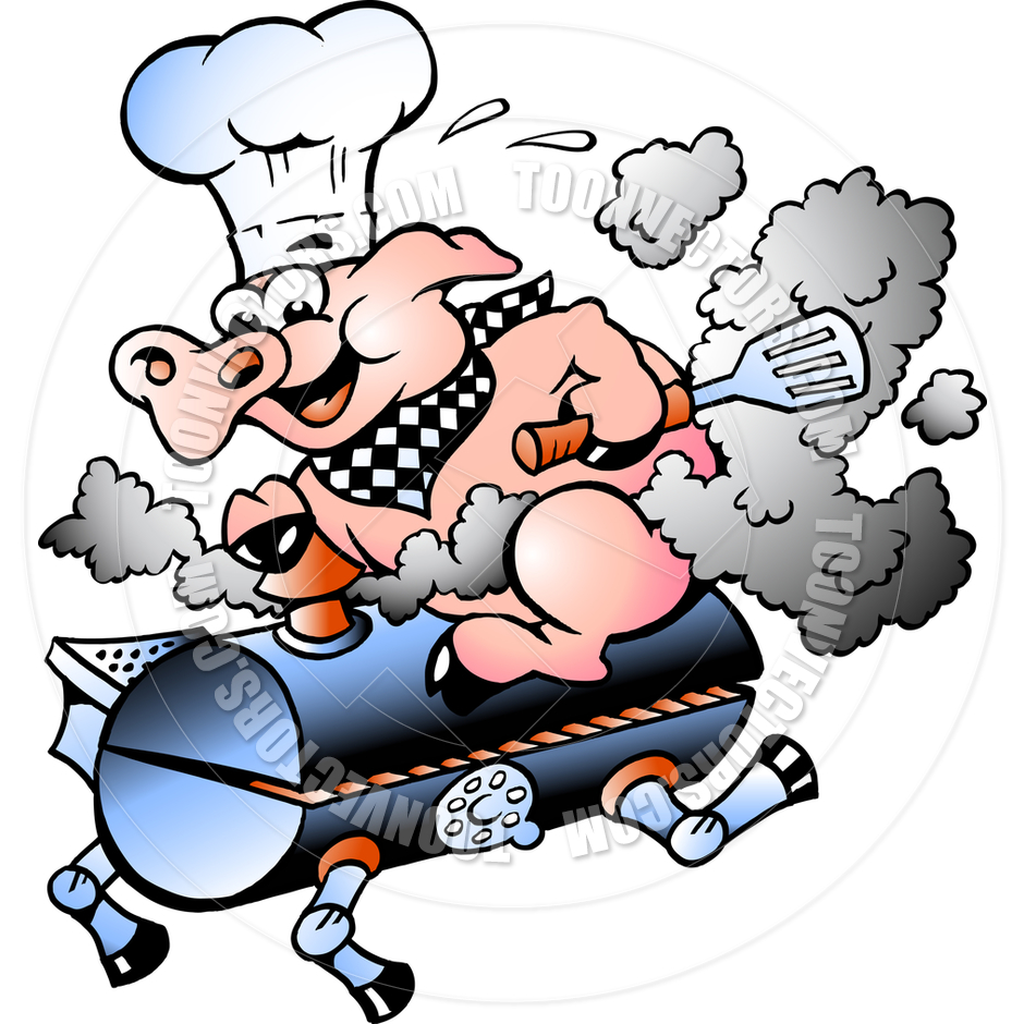 Pig bbq cartoon: Cartoon Chef Pig Riding an BBQ