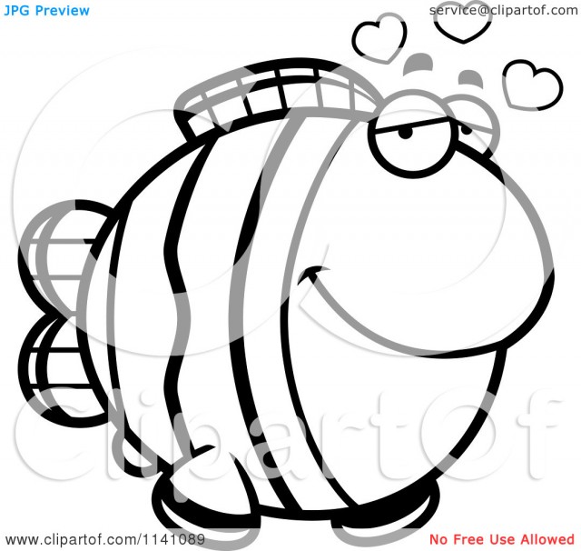 Clown fish clip art black and white: Cartoon Clipart Of A Black And
