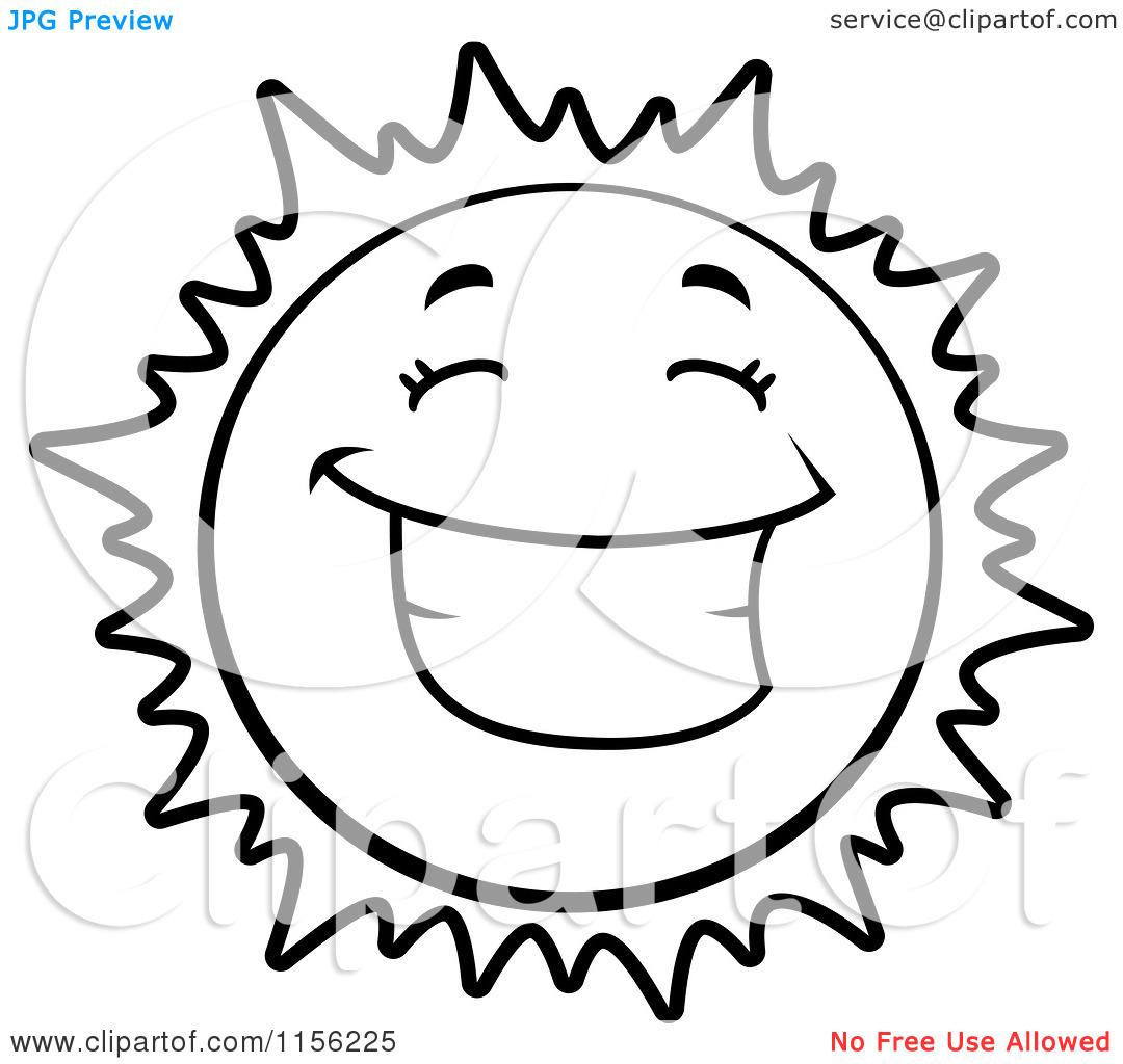 Happy sun clipart black and white: Cartoon Clipart Of A Black And