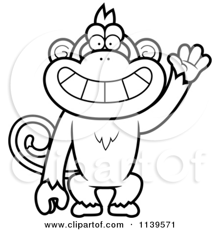 Baby monkey clip art black and white: Cartoon Clipart Of A Black And