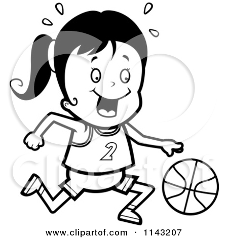 Girls basketball clipart black and white: Cartoon Clipart Of A Black And