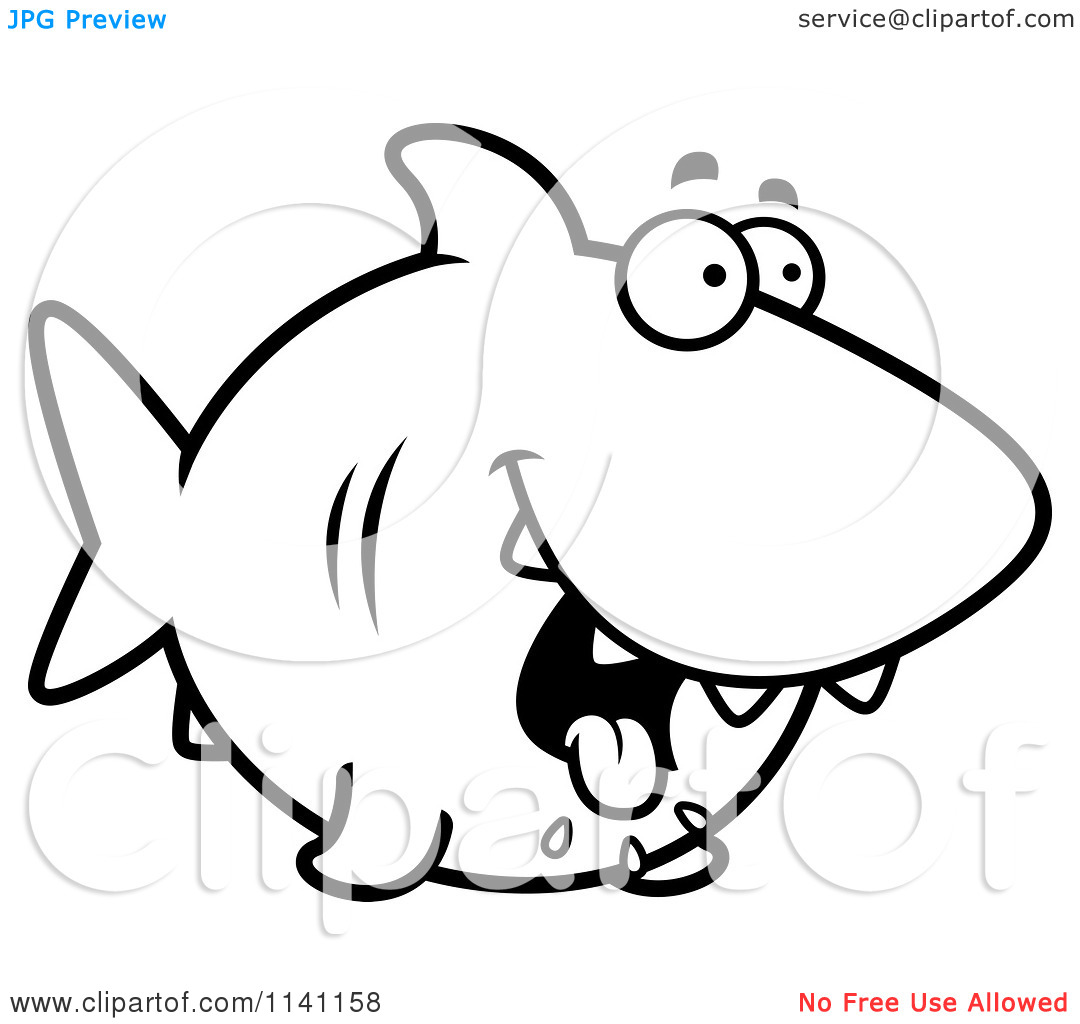 Shark clip art black and white: Cartoon Clipart Of A Black And