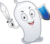Condom clipart: cartoon condom; condom wrapper