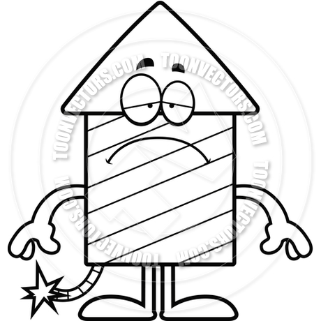 Fireworks vector black and white: Cartoon Firework Sad (Black