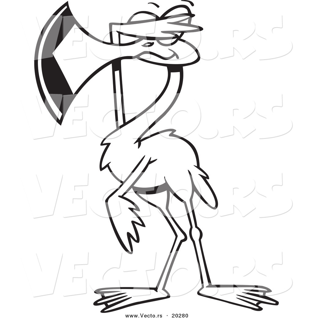 Flamingo coloring pages: Cartoon Flamingo Covering His