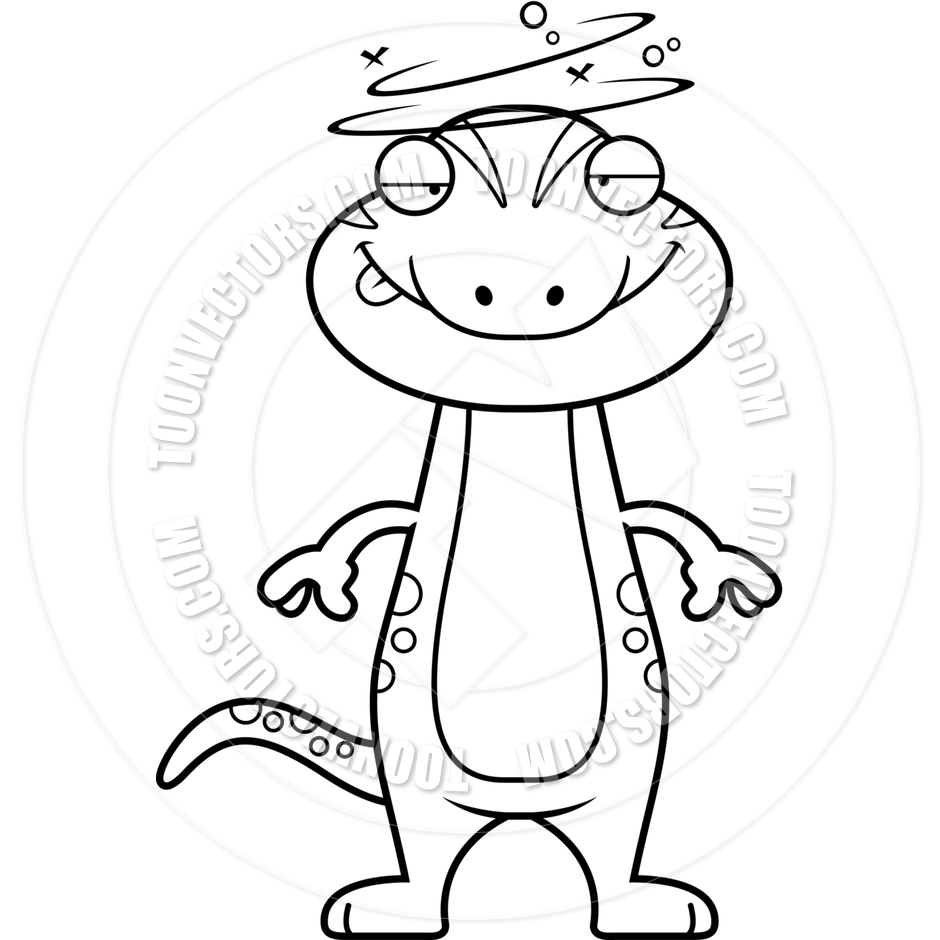 Lizard clipart black and white: Cartoon Gecko Drunk (Black and