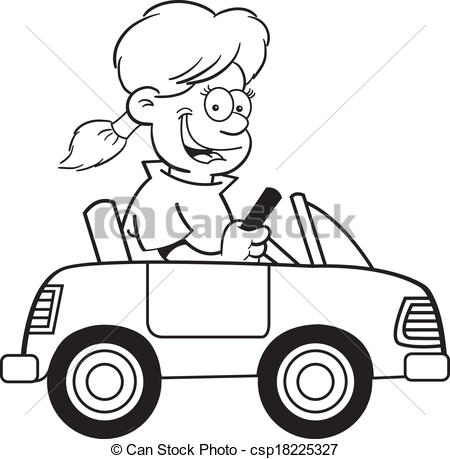 Toy car clipart black and white: Cartoon girl in a toy car -
