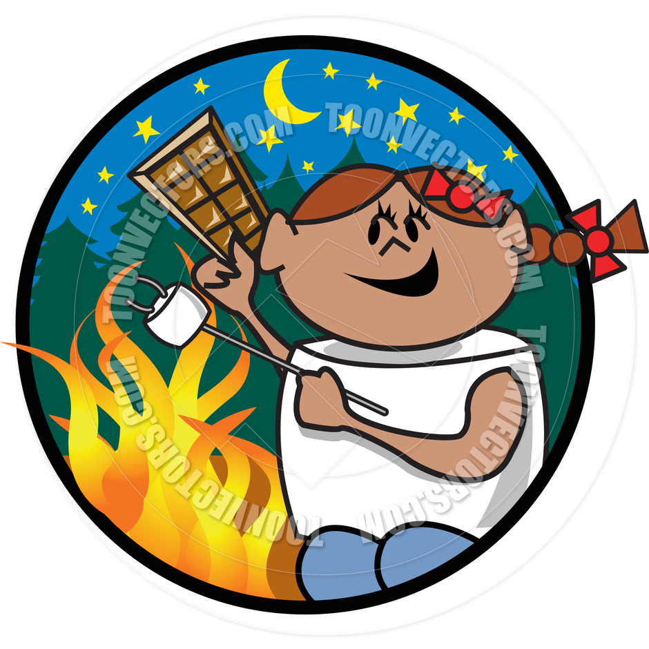 Roasting marshmallows cartoon: Cartoon Girl Roasting
