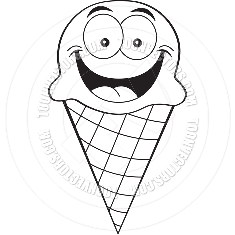 Black and white ice cream cone clipart: Cartoon Ice Cream Cone (Black