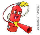 Fire extinguisher cartoon: Cartoon illustration of fire