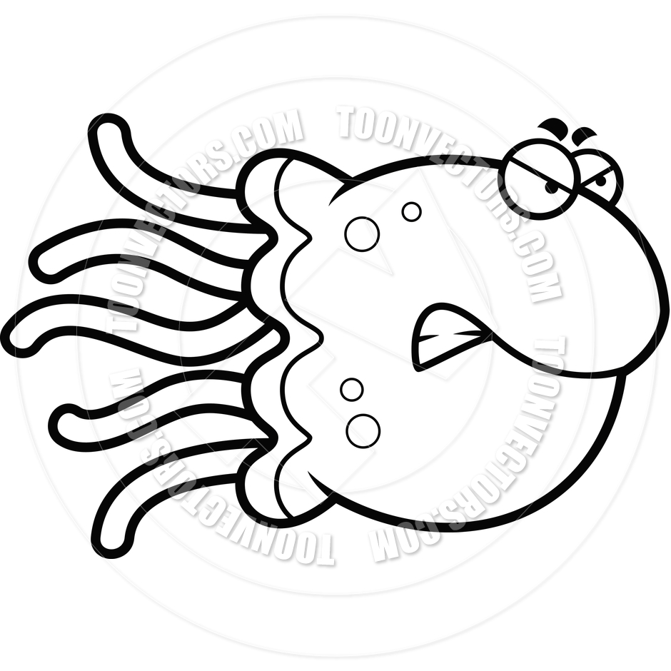 Jellyfish clipart black and white: Cartoon Jellyfish Angry (Black