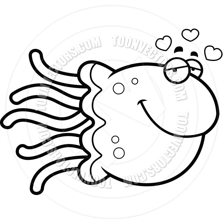 Jellyfish clipart black and white: Cartoon Jellyfish in Love