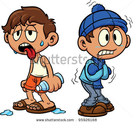Weather thermometer for kids: Cartoon kid in hot and cold