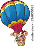 Hot air balloon clipart baby: cartoon kids riding a hot air.