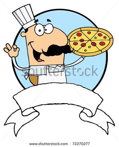Pizza pie cartoon: Cartoon Logo Mascot-Pleased