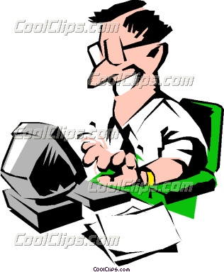 Typing clipart: Cartoon man typing at computer