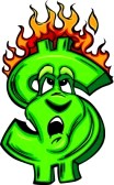 Cartoon city on fire: Cartoon Money Sign on fire